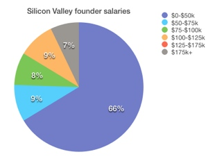 这是一个敏感而有趣的话题,毕竟创业本来就是砸锅卖铁破釜沉舟置之死地而后生的风险驱动型行当,作为创始人如果能领取足够安全的高薪似乎有悖初衷。据Compass的统计数据,在受调查的11160个硅谷创业公司中,75%的创始人给自己开的年薪不到7.5万美元,66%的创始人年薪低于5万美元。