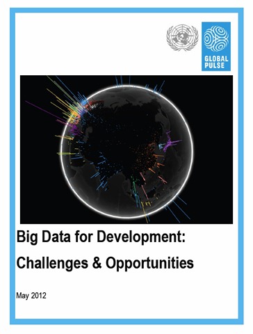 在这个名为《大数据促发展:挑战与机遇》的白皮书中,联合国指出大数据对于联合国和各国政府来说是一个历史性的机遇,联合国还探讨了如何利用包括社交网络在内大数据资源造福人类。该报告是联合国“全球脉搏”项目的产物。“全球脉搏”是联合国发起的一个全新项目,旨在利用消费互联网的数据推动全球发展。利用自然语言解码软件,可以对社交网络和手机短信中的信息进行情绪分析,从而对失业率增加、区域性开支降低或疾病暴发等进行预测。