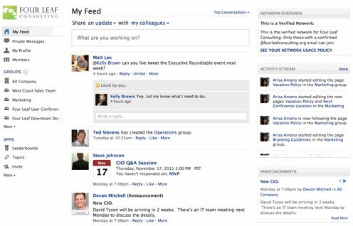 Yammer的定位是企业版微博平台,与Twitter有些类似,但增加了一些商务功能如群组讨论、文件共享和应用集成等。