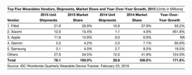 IDC:2016年Q2中国可穿戴设备出货量954万台 同比增长81.4%